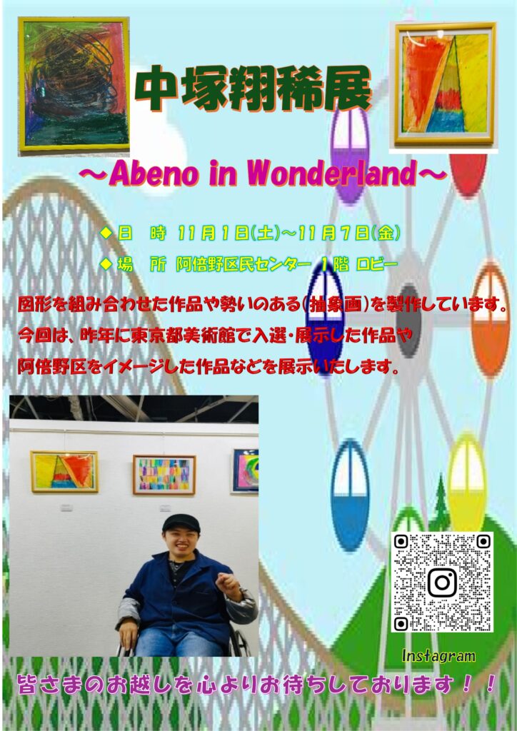 阿倍野区民センターにて、当社で働いている中塚翔稀さんの個展のお知らせです🎨