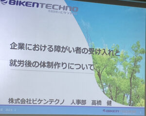 髙橋次長は、採用側企業として、障がい者雇用の現状、当社の障がい者雇用体制、障がい者支援の取り組み等を説明されました。